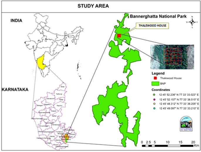 Map showing Bannerghatta National Park (BNP) along with other