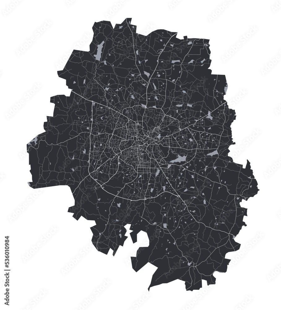 Bangalore map. Detailed black map of Bengaluru city poster with